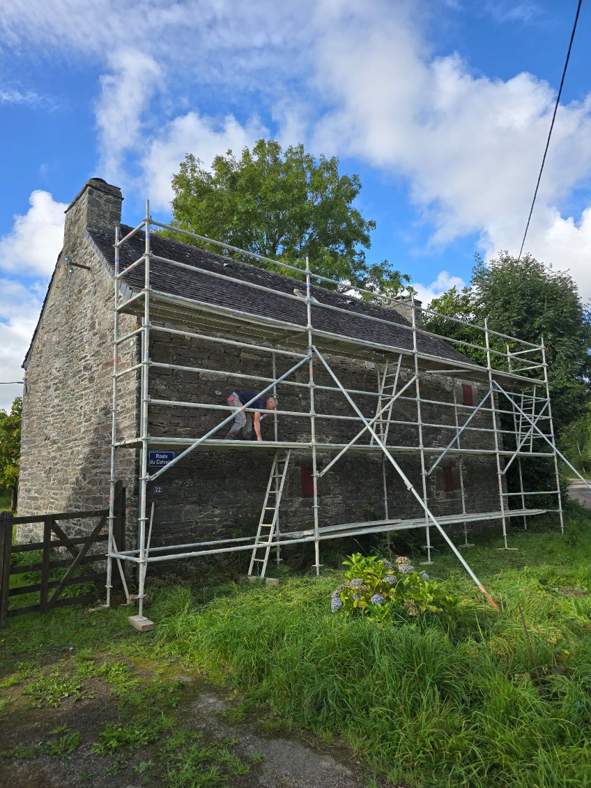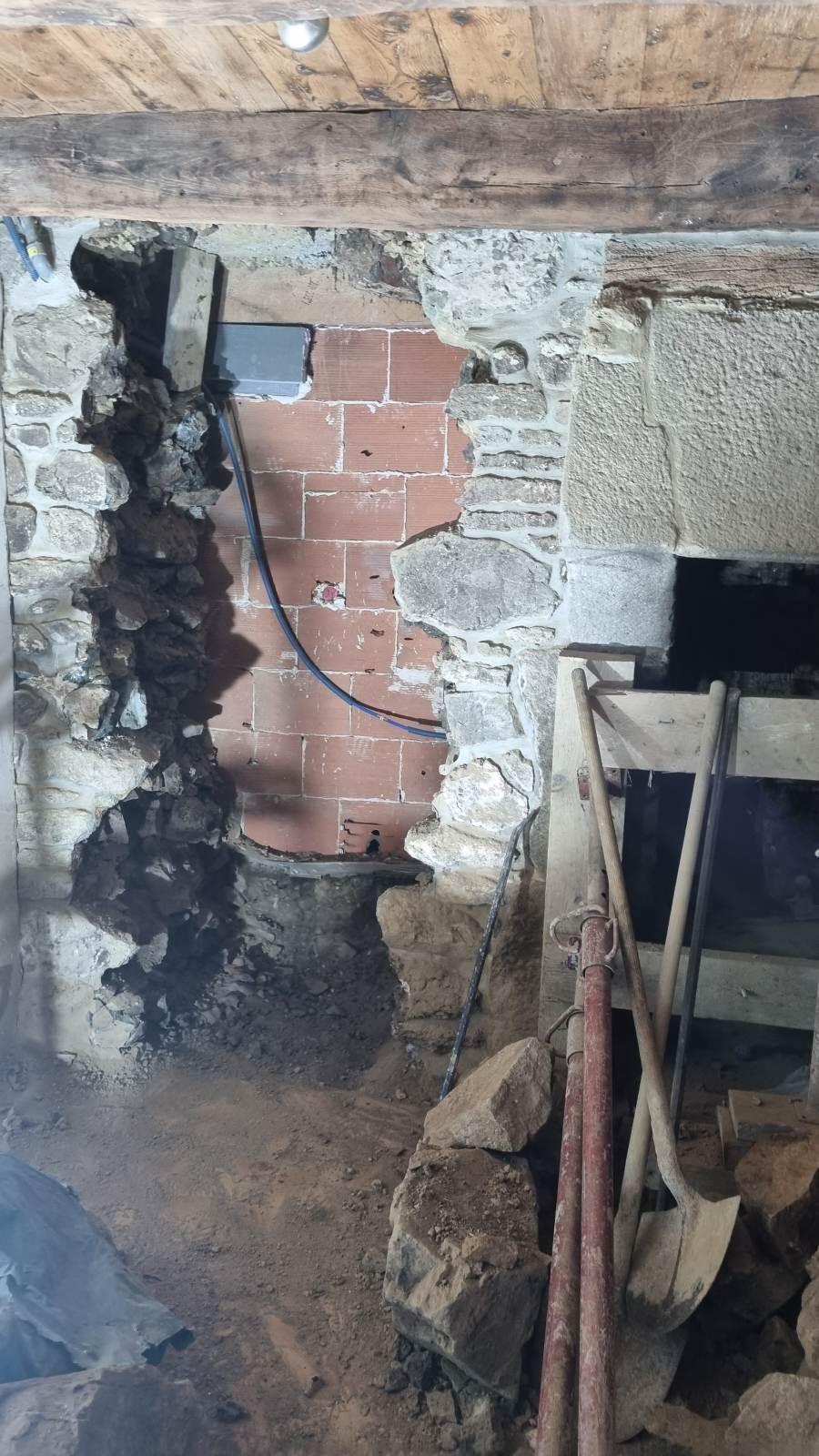 Extension remontage des murs en pierre dallage isolé ouverture de mur porteur