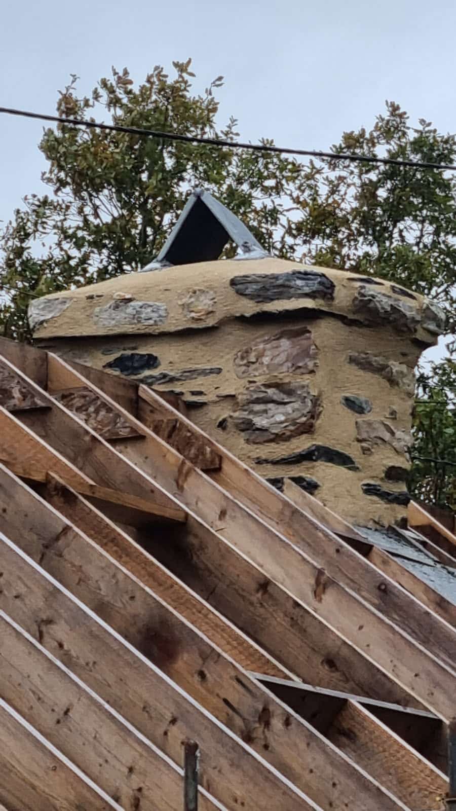Rénovation de cheminée enduit à pierre vue chaux sable